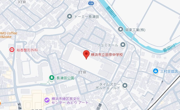 川和高校野球部の濱岡蒼太選手が通っていた田奈中学校は神奈川県横浜市緑区長津田2丁目24−1にあります。