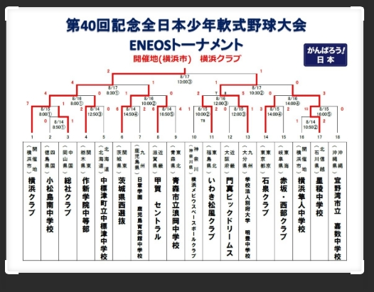 濱岡蒼太選手が在籍していた時のチーム成績は東日本少年軟式野球大会優勝です。
