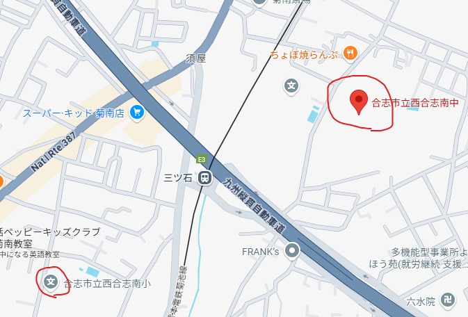 森下翔太選手は、地図上にある西合志南小学校に通われていました。
