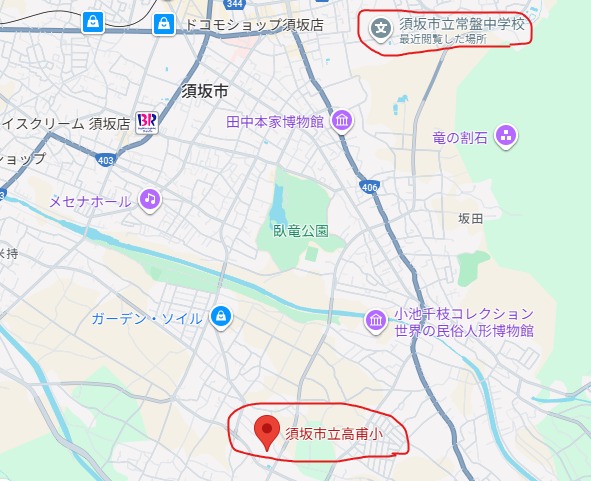 小学校と中学校の位置関係はこちらです。