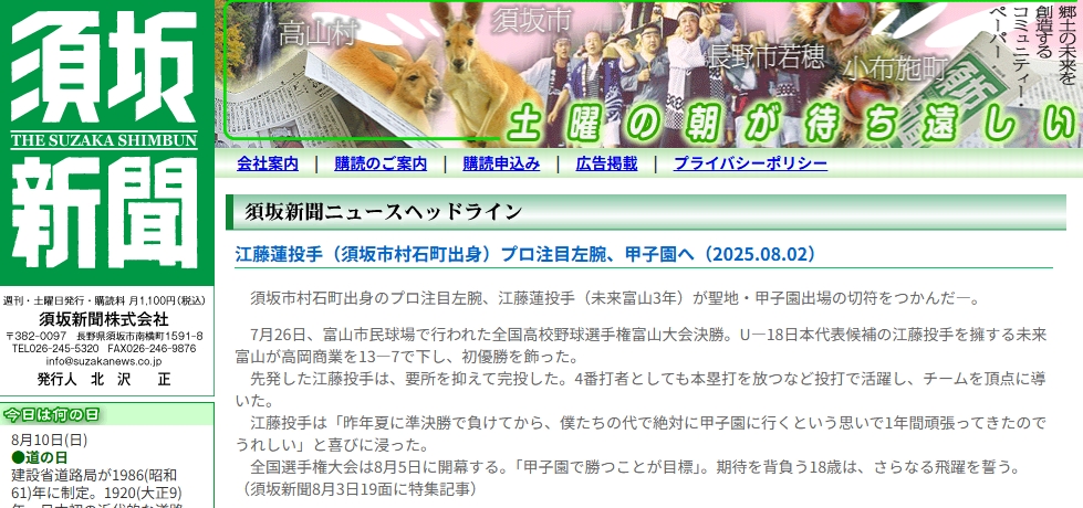 江藤蓮選手は地元須坂市の新聞に載っていて地域では有名人なんですね。